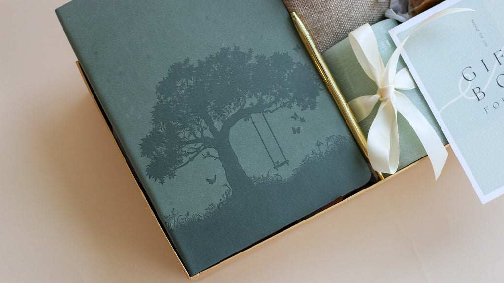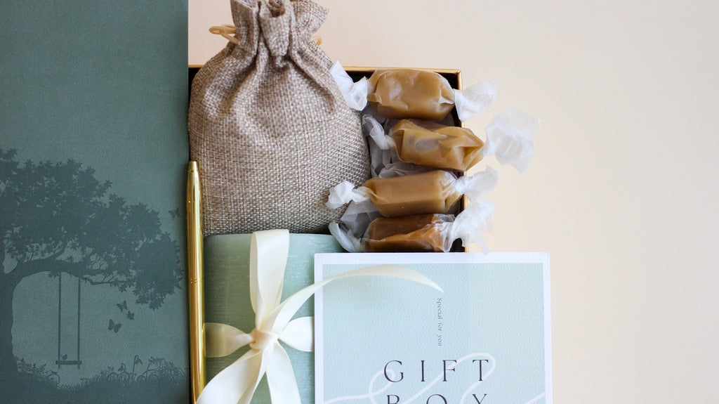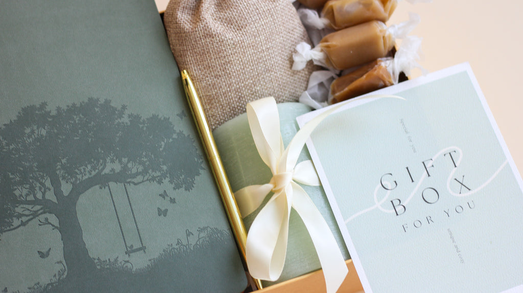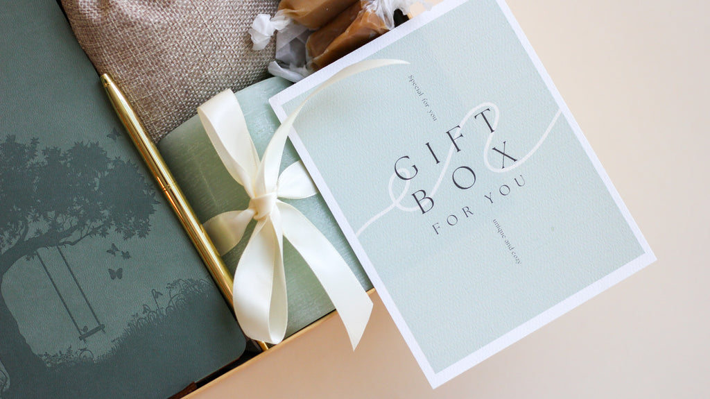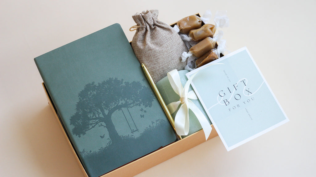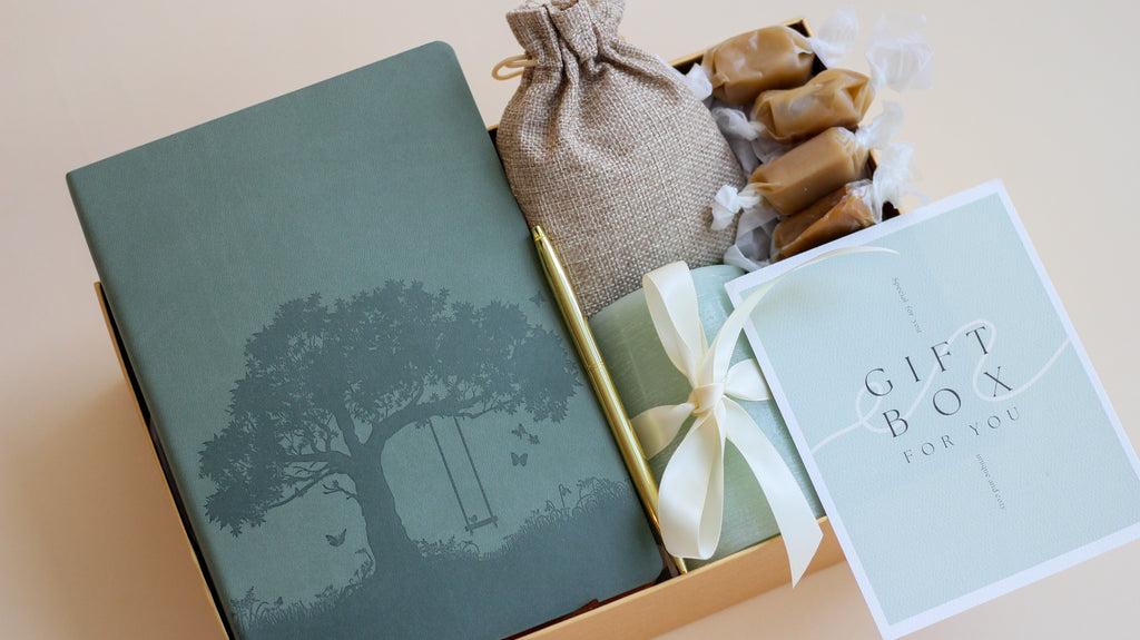Experience luxury and inspiration with our Journal Gift Box. Perfect for men and women, this unique gift comes with a leather journal, a golden pan, indulgent sea salt caramels, and a scented candle, all elegantly packaged in a stylish gift box. Give the gift of creativity and relaxation to your clients or yourself.